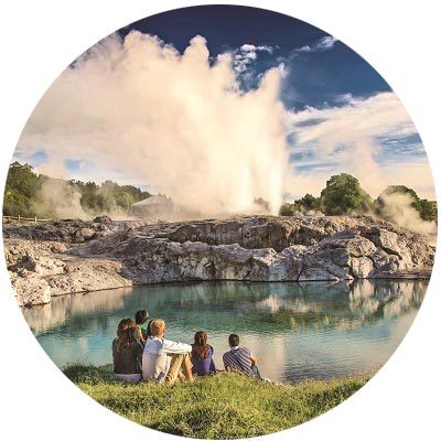 Por la tarde, visitamos Te Puia, una Reserva Termal donde nos sorprendemos con los fantásticos géiseres. Además vamos al Centro Cultural Maorí. Vemos una demostración de danzas y canciones locales y disfrutamos una cena típica.